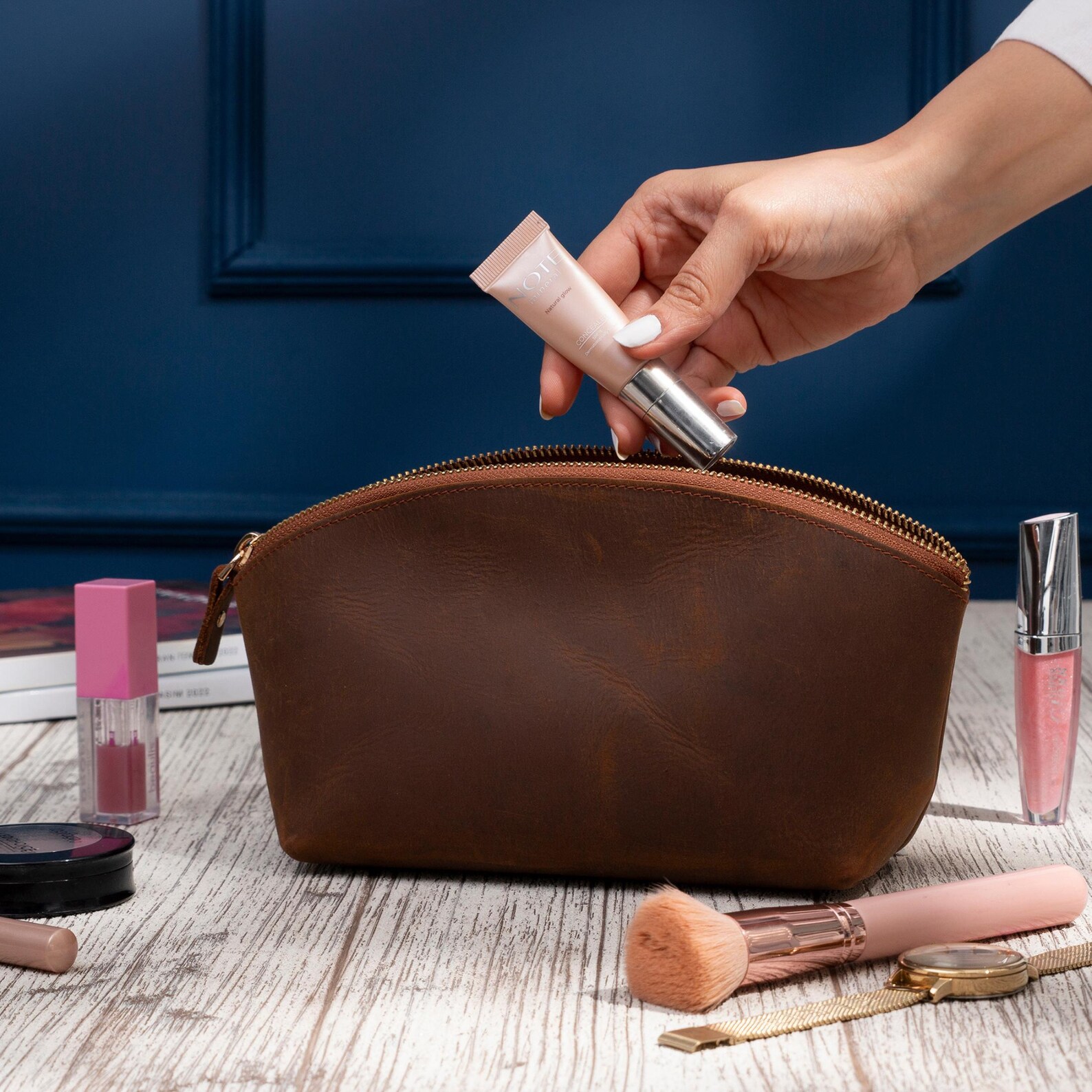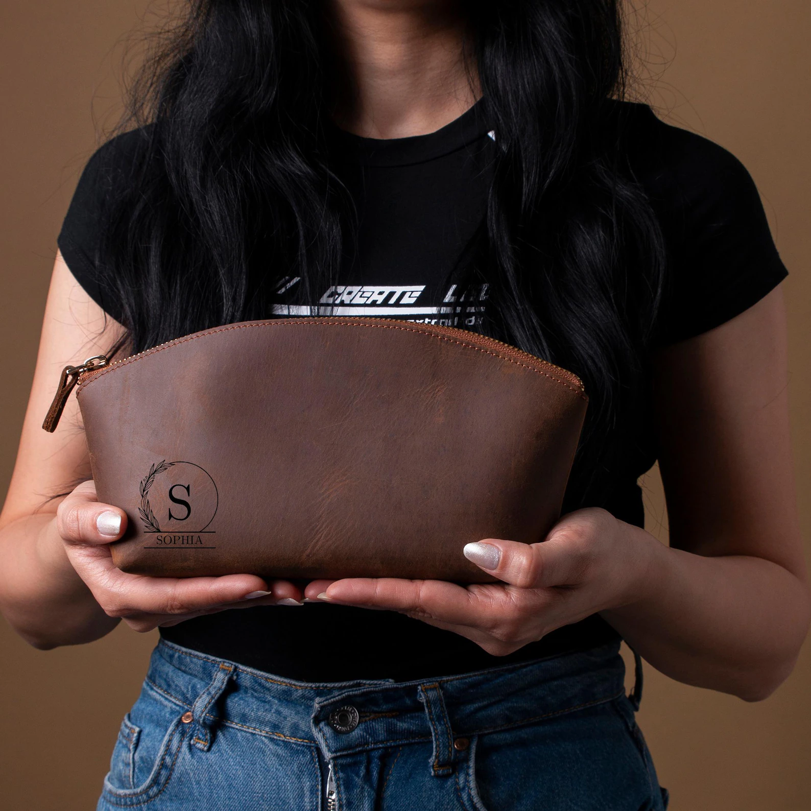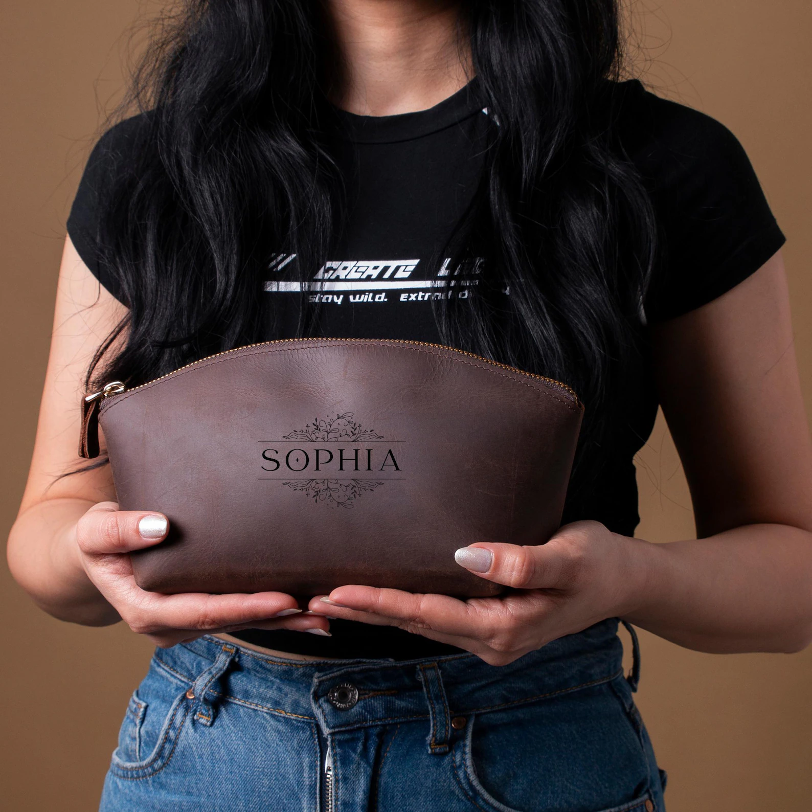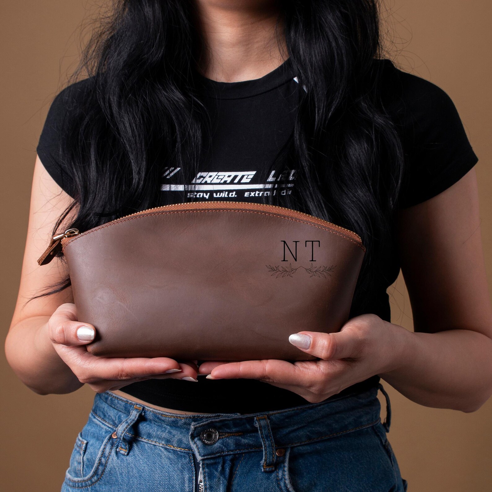 ✦ Personalized Leather Makeup Bag – Elegant, Functional, Custom ✦
