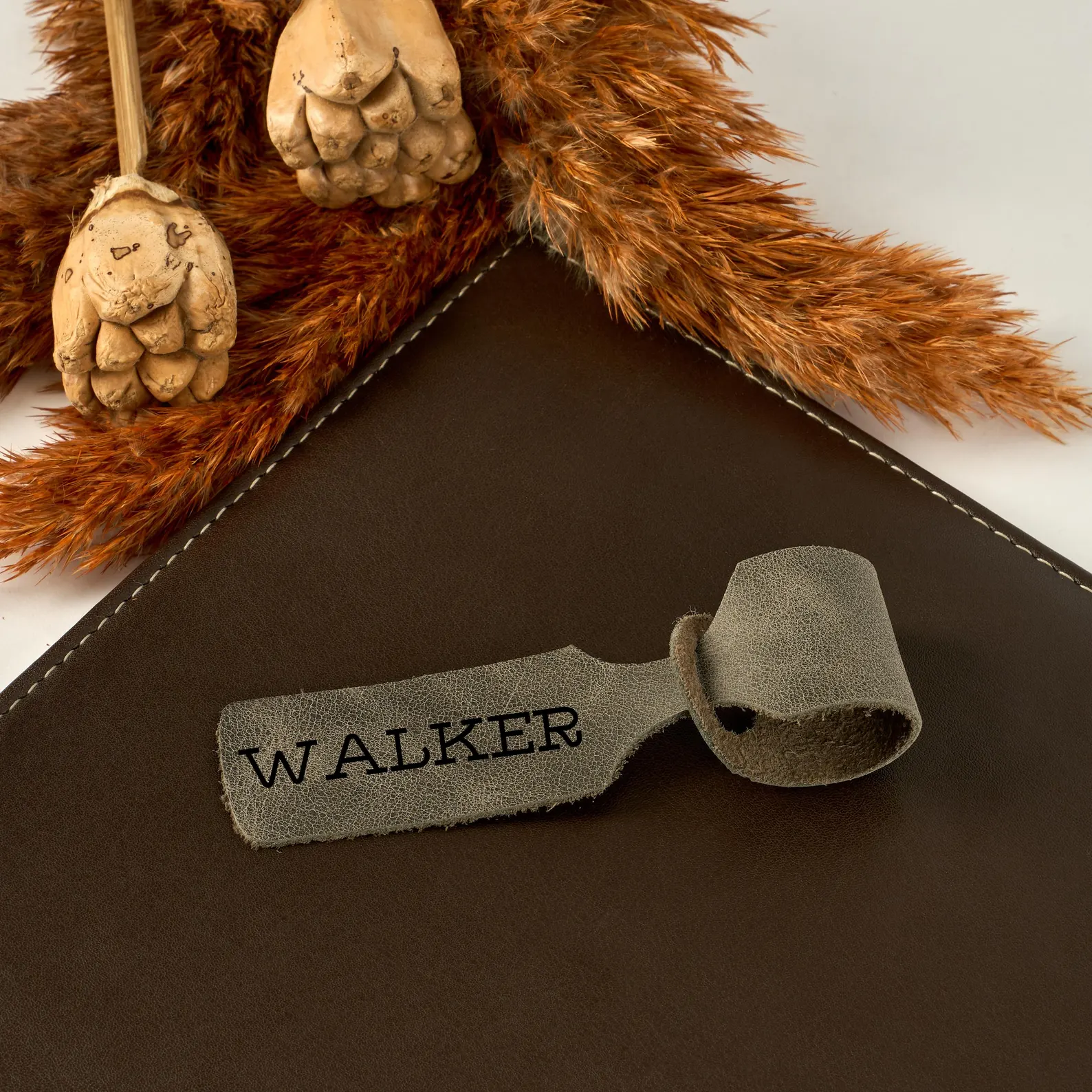 Each leather bag tag is handmade and available in Light Brown, Burgundy, and Charcoal Gray, giving you timeless options for any style.